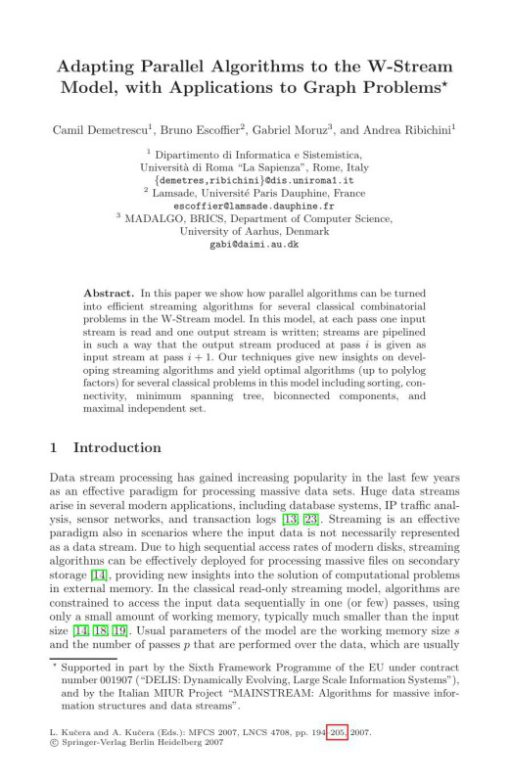 Adapting Parallel Algorithms to the W-Stream Model, with Applications to Graph Problems 1st Edition by Camil Demetrescu, Bruno Escoffier, Gabriel Moruz, Andrea Ribichini – Ebook PDF Instant Download/Delivery. 9783540744566