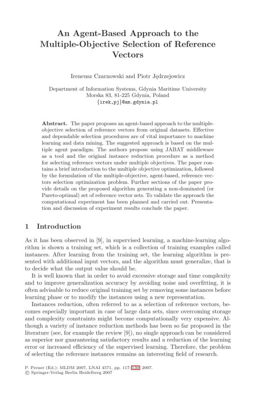 An Agent Based Approach to the Multiple Objective Selection of Reference Vectors 1st Edition by Ireneusz Czarnowski, Piotr Je¸drzejowicz – Ebook PDF Instant Download/Delivery. 9783540734987