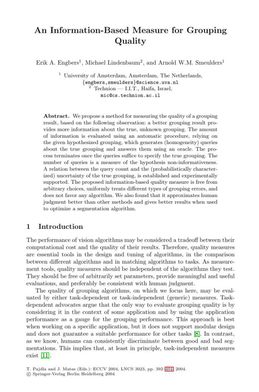 An Information-Based Measure for Grouping Quality 1st Table of contents: