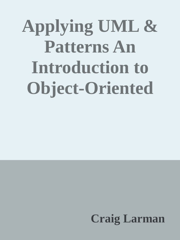 ―John Vlissides,author,Design PatternsandPattern Hatching“People often ask me which is the best book to introduce them to the world of OO design. Ever since I came across it Applying UML and Patterns has been my unreserved choice.”