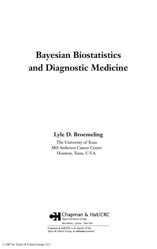 Bayesian Biostatistics and Diagnostic Medicine 1st Table of contents: