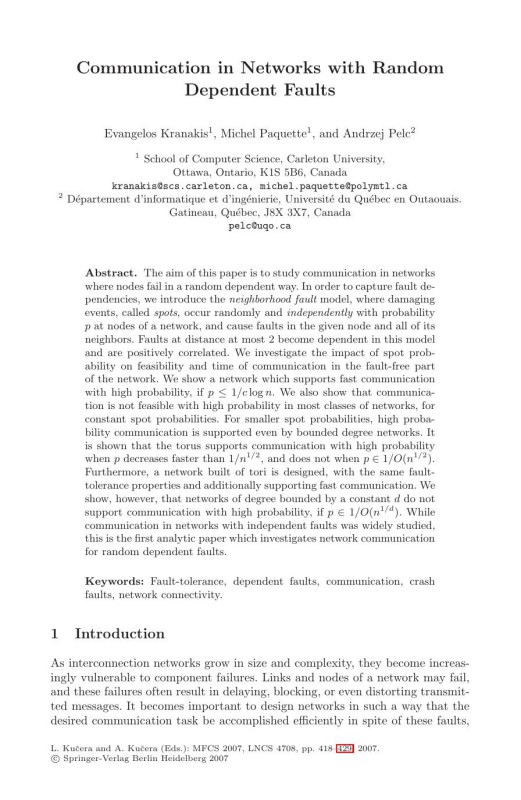 Communication in Networks with Random Dependent Faults 1st Edition by Evangelos Kranakis, Michel Paquette, Andrzej Pelc – Ebook PDF Instant Download/Delivery. 9783540744566