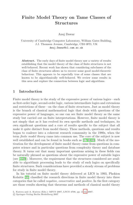 Finite Model Theory on Tame Classes of Structures 1st Edition by Anuj Dawar – Ebook PDF Instant Download/Delivery. 9783540744566