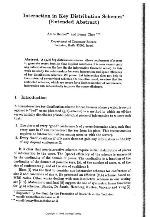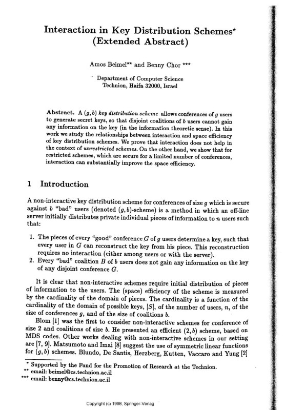 Interaction in key distribution schemes 1st Edition by Beimel A, Chor B – Ebook PDF Instant Download/Delivery.