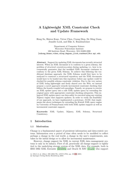 LNCS 2784 – A Lightweight XML Constraint Check and Update Framework 1st Edition: