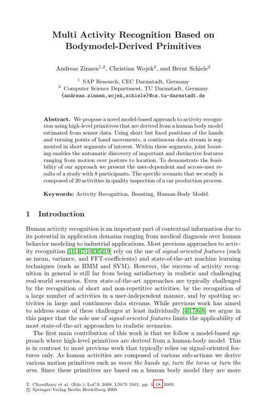 Multi Activity Recognition Based on Bodymodel-Derived Primitives 1st Table of contents: