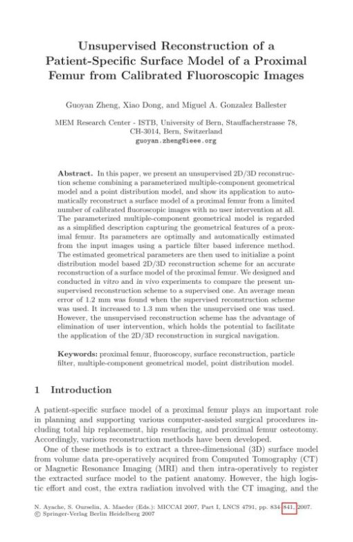 People also search for Unsupervised Reconstruction of a Patient Specific Surface Model of a Proximal Femur from Calibrated Fluoroscopic Images 1st: